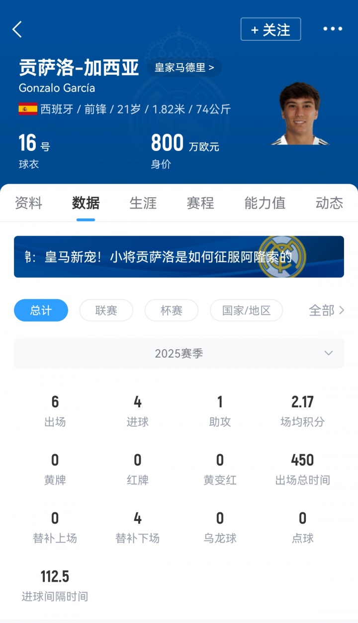 一名已经令人印象深刻的球员是19岁的冈萨洛·加西亚。上赛季为皇家马德里卡斯蒂利亚打进25球后,他在今年夏天的世俱杯上大放异彩,以四球并列最佳射手。去年马德里缺乏真正的中锋,加西亚可能成为那个核心点。